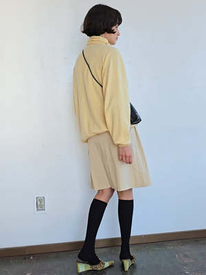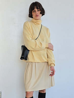 Vintage Land's End turtleneck. Lightweight 2 ply cashmere in a sunny yellow. In great condition. MEASUREMENTS (in inches) 46 in bust 40 in waist 28 in length MATERIALS Cashmere
