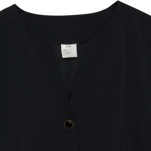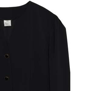 amis (Finland) Gabardine Weave Monastic Jacket Onyx : M SOS | sundazed.io/products/amis-gabardine-weave-monastic-jacket-onyx-m Brand: amis Origin: Finland Condition: New Vintage (mint condition or new without tags) Look: Median Degree of Modesty Department: Women Tag: C 38 Size: M Color: Black Fabric: Gabardine Shell: Polyester Type: Jacket Fit: Relaxed Style: Monastic Length: Mid-Length Sleeve Type: Eased Set In Sleeve Length: Long Neckline: Hybrid Pockets: Single Welt Cuffs: Invisible Hem Seams: Princess Armseye Construction: Top Stitched Buttons: Enamel Measurements (cm): Chest: 53 Length: 77 Shoulder: 40 Sleeve: 59 Hem: 54 SKU: 000877