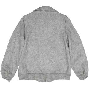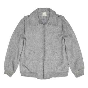 70s Vintage (mint condition) Tag: REF 437 127 12447, ENDRO17 Fabric: Woven Composition: 58% Laine 42% Viscose SKU: 003390 This structured wool-blend zip-up jacket embodies a military silhouette, balancing durability, warmth, and refined tailoring. The robust construction, classic details such as epaulettes, and functional elements suggest a design meant for both practicality and style. The heathered gray color enhances its versatility, making it adaptable for both casual and semi-formal occasions. With a full-length front zipper, the jacket offers ease of wear and adjustable temperature control while maintaining a clean and structured aesthetic. Categorized as a womens wool-blend flight jacket, this piece exhibits a utilitarian appeal with a structured yet relaxed fit. The construction features a tailored panel design, incorporating multiple structured pieces sewn together to enhance shaping. The shell is crafted from a high-quality wool-blend fabric, ensuring insulation and long-term durability. The interior is fully lined with a lightweight checkered woven fabric, likely a cotton-viscose blend, which enhances breathability and comfort. Precision topstitching along major seams reinforces the garments durability, ensuring longevity and maintaining its sharp silhouette. The fabric composition consists of 58% wool and 42% viscose, woven in a twill pattern with a brushed finish that provides a soft, textured hand feel while offering additional insulation. The heavyweight fabric makes it ideal for colder seasons, combining natural thermal properties with a breathable structure. Wools natural moisture-wicking and odor-resistant qualities are complemented by the viscose blend, which introduces softness and flexibility, preventing the garment from feeling overly rigid. Key design elements emphasize its military heritage. Epaulettes with button closures on the shoulders reinforce the structured, officer-inspired look. Ribbed cuffs and hem add elasticity while ensuring wind resistance, maintaining the jackets fitted shape over time. Slanted welt pockets with reinforced stitching enhance durability, providing functional storage without compromising the clean aesthetic. A sturdy zipper closure with metal teeth offers a secure fastening, contributing to the jackets utilitarian design. The woven checkered fabric lining introduces an element of classic menswear heritage, adding an unexpected layer of sophistication to the otherwise minimal design. The fit is structured yet slightly relaxed, allowing for layering underneath without appearing overly bulky. The slightly dropped shoulders provide a relaxed drape while maintaining the jackets tailored look. The multi-panel construction optimizes shape retention, reducing fabric bulk while ensuring a streamlined profile. The front and back panels are cut with minimal seams, preserving the clean aesthetic, while the two-piece sleeve construction enhances ergonomics, allowing for improved movement and fit. The collar is designed with a large, rounded shape, reinforced with stitching to maintain its crisp appearance. The extended roll of the collar adds to the structured aesthetic and can be worn up for additional warmth. The sleeves are set-in and taper slightly towards the ribbed cuffs, ensuring a snug fit while keeping cold air out. The seaming utilizes either flat-felled or overlocked construction, reinforcing durability while minimizing excess bulk. Functionally, this jacket provides excellent moisture-wicking properties due to the wool-viscose blend, preventing discomfort from humidity while retaining warmth in colder temperatures. The breathable lining ensures that the wearer does not overheat, making it adaptable across various conditions. The moderate pattern complexity, stemming from the multi-panel structure and reinforced details, adds depth to its design while maintaining a clean, minimal aesthetic. The edges are bound or overlocked, preventing fraying and extending the garments lifespan. Stylistically, this piece draws strong influence from mid-20th-century military outerwear, particularly European and American wool field jackets. The subtle checkered lining introduces a refined, preppy influence reminiscent of British heritage styling, elevating its appeal beyond traditional military garments. The overall aesthetic strikes a balance between utilitarian function and understated sophistication, making it an adaptable piece in both rugged and polished wardrobes. Historically, wool bomber jackets have origins in military uniforms from the 1940s and 1950s, when they were designed for warmth and resilience. The structured fit, epaulettes, and zip-up closure reference officer-style coats while modernizing the silhouette for contemporary wear. The neutral heathered gray color aligns with the principles of minimalism and Scandinavian-inspired menswear, making it a timeless and highly versatile choice. This wool-blend bomber jacket is a sophisticated yet functional outerwear piece that successfully merges military heritage with modern styling. The high wool content ensures warmth and durability, while the structured tailoring and epaulettes give it a classic appeal. Practical details such as the zippered closure, ribbed trims, and ergonomic sleeve construction enhance wearability, making it a reliable staple for colder seasons. Its military references, subtle checkered lining, and high-quality fabric composition position it as an investment-worthy garment, suitable for both casual and semi-formal settings.