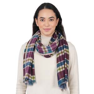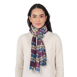 The Highland Check Scarf in Cream Wine is a versatile accessory crafted from 100% wool. Its plaid pattern features a blend of wine, purple, blue, and green hues, offering visual interest. The scarf is designed for layering, providing warmth without significant bulk. Its dimensions are 65 cm x 180 cm, allowing for various styling options, from a snug neck wrap to a draped shoulder accent. This scarf is suitable for cooler weather and can complement both casual and more dressed-up ensembles. Crafted from 100% wool for natural warmth and breathability, with generous dimensions of 65 cm x 180 cm for versatile styling. Features a distinct plaid pattern in wine, purple, blue, and green, and a lightweight construction that provides comfort for everyday wear. Made in India and designed in Los Angeles.
