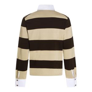 Men > Clothing > Topwear > Polo Shirts Beige and brown cotton polo shirt from Vivienne Westwood featuring long sleeves, a polo collar, frontal detail, all-over stripes, and regular fit. Composition: 100% Cotton.