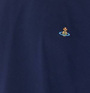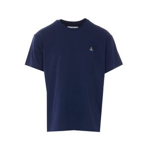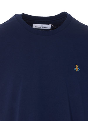 Men > Clothing > Topwear > T-Shirts Vivienne Westwood blue classic T-shirt with crewneck and an embroidered Orb logo2 on the front. Composition: 100% Cotton.
