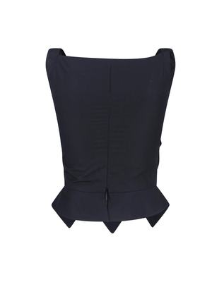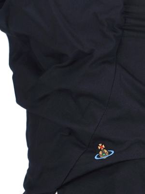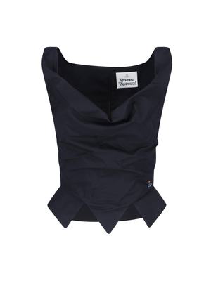 Women > Clothing > Topwear Vivienne Westwood Sunday top in black organic cotton with a corset design, shoulder straps, logo2 embroidery on the chest, back zip closure, and asymmetrical hem. Composition: 100% Organic Cotton.