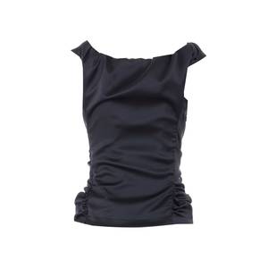 Women > Clothing > Topwear Vivienne Westwood black Mini Kiltginnie top with zip closure, ruffle detail, and satin effect. Composition: 100% Polyester.