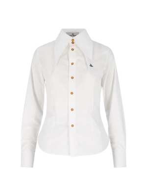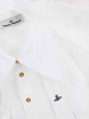 Women > Clothing > Topwear > Shirts Vivienne Westwood "W Violin" white cotton shirt with classic maxi collar, button closure, multicolor Orb logo2 embroidery on the chest, button cuffs, and a curved hem. Composition: 100% Cotton.
