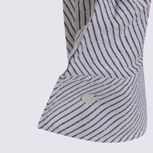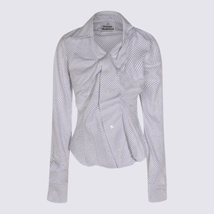 Women > Clothing > Topwear > Shirts Blue and brown cotton shirt from Vivienne Westwood featuring a shirt collar, long sleeves, an asymmetrical closure, a striped motif, an embroidered Orb logo2, and a regular fit. Composition: 87% Cotton, 13% Polyamide