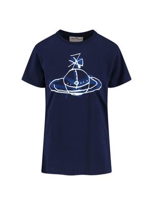 Vivienne Westwood 'Classic' blue cotton crew neck t-shirt with short sleeves, white and blue 'Drawn Orb' logo2 print on the chest, and a straight hem. Composition: 100% Cotton.
