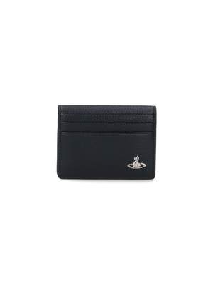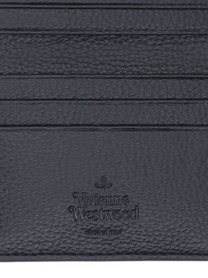 Women > Accessories > Wallets Vivienne Westwood orb bi-fold card holder in black fabric with a silver metal orb logo2 on the front, three card slots on the front, three on the back, and six inner card slots. Composition: 100% Polyurethane.