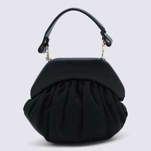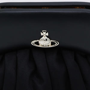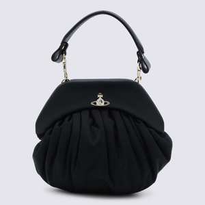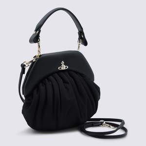 Women > Bags > Clutches Black viscose Brooke clutch from Vivienne Westwood featuring removable top handles, a removable and adjustable shoulder strap, silver-tone logo2 hardware, a main compartment, and a magnetic closure. Composition: 100% Viscose.