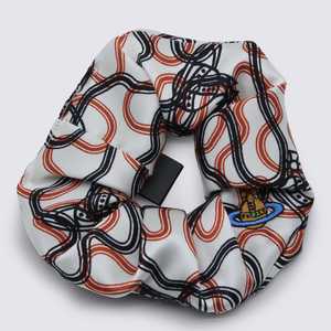Women > Accessories > Hair accessories White and orange silk hair accessories from Vivienne Westwood featuring a logo2 patch and printed design. Composition: 100% Silk.