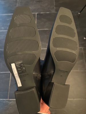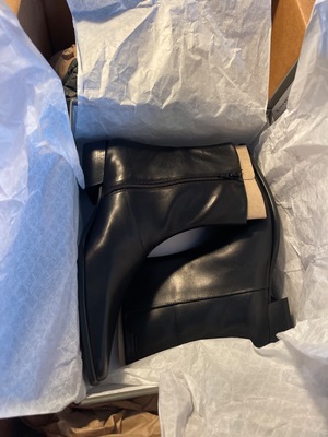 Black boots, unworn, still in original packaging