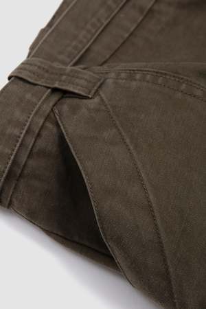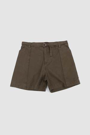 A unisex short crafted in wefted cotton slub, presented in olive.
