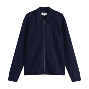 This soft mohair zip cardigan features a cable knit construction and a cardigan-jacket hybrid design. It includes a two-way zip for versatility. Hand wash only inside out. Do not tumble dry or dry clean. 40% polyamide, 28% acrylic, 22% wool, 10% mohair. Made in China.