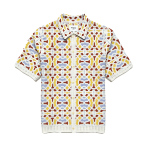 The Dorset shirt steps confidently into the crochet conversation. A fresh addition to the SS25 lineup, its cut for a regular fit and crafted from a cotton blend yarn woven with shades of ecru, yellow, rust, and pale blue in a geometric tile design. The knit itself is denser than the lighter Porto silhouette, making it a more substantial optionperfect for the transition between seasons. - Dense crochet knit design - Crochet edging at collar, cuffs and hem - Button placket
