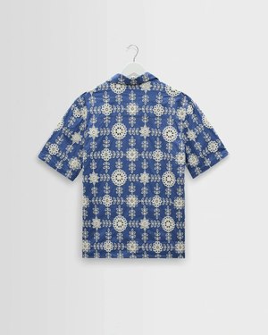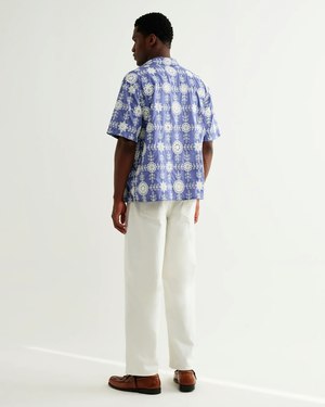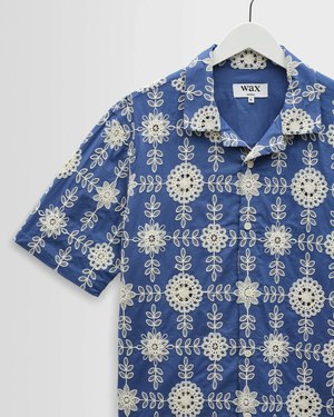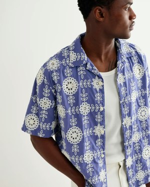 The Didcot returns in a 100% cotton fabric with an intricate blue and ecru corded floral lace design. The elevated detailing runs across the shirt, adding texture and refinement to this seasonal update. 100% cotton construction for breathable comfort. Intricate corded floral lace design. Elevated texture throughout. Relaxed fit with hem side splits for ease of movement. 100% Cotton. Made in India.