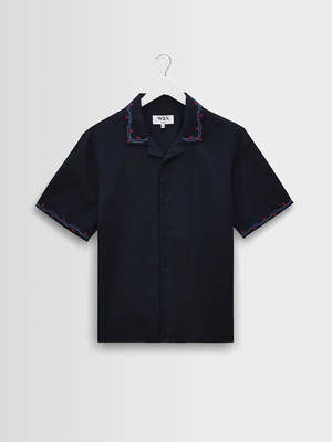 The Didcot returns in a softly washed cotton-linen blend for a lightweight, breathable feel. Blue and red cross-stitch embroidery adds considered detailing along the collar edge, sleeve hem and back yoke, bringing subtle craft character to a summer staple. Softly washed cotton-linen blend for breathable comfort. Cross-stitch embroidery at the collar, sleeve and back yoke. Relaxed fit with hem side splits for ease of movement.