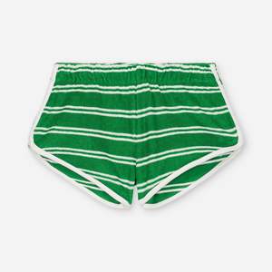 DETAILS - Summer green stripes - Short length - Relaxed fit - Elasticized waist - Terry construction - 100% Organic cotton STYLE NOTES - This style runs very short. If you are concerned about length, we recommend sizing up.