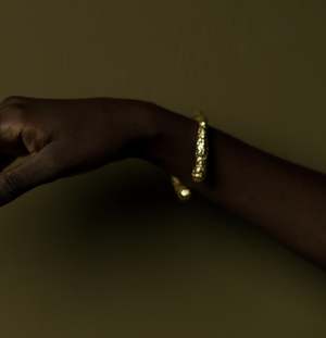 The Tumbawe Bracelet is a unique piece that adds a touch of artisanal charm to any outfit. Its polished gold finish catches the light beautifully, adding a sophisticated accent whether you're heading to a casual day out or an evening event. Designed to be both eye-catching and comfortable for all-day wear, its distinctive texture and design make it a standout piece in any jewelry collectsion. PRODUCT FEATURES: - Unique, artisanal design for a one-of-a-kind look - Polished gold finish that catches the light beautifully - Comfortable for all-day wear, transitioning seamlessly from day to night - Adds a touch of sophisticated style to any ensemble