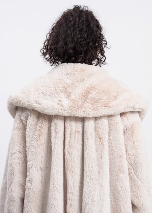 Embodying the nostalgic 80s style that We11done is all about, this fur coat truly does it all. With an oversized fit and extra-large lapel, this is the perfect statement piece. Constructed from a luxurious faux fur. Features pleating is the bag giving the coat a more fluid silhouette and a silky inside lining. Oversized Fit 100% Polyester Imported Model is wearing size One Size Model is 57 (170 cm), 110 pounds (49 kg), usually wears a size XS/34 in tops. A size 23.5 in denim and FR 34 in bottoms. Size 8 in shoes
