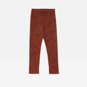 Chocolate brown leggings with illustrated dog print. - Unisex kid's pants - 96% organic cotton 4% elastane - Color: Brown - Elastic pull-on waistband - Full length - Slim cut - Made in Spain