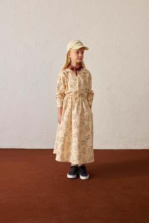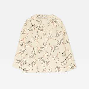 Fluffy dogs adorn this charming pajama style buttondown shirt. - Unisex kid's shirt - 100% organic cotton - Color: Sand - Notch collar - Dropped shoulders - Long sleeves with button fastening on cuffs - Loose fit - Made in Spain