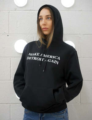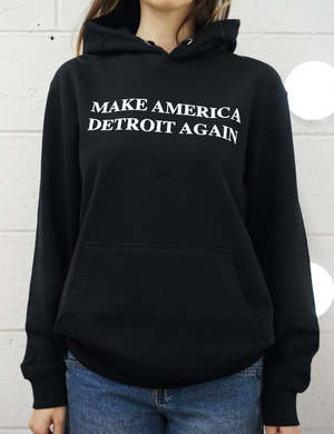 Our antidote hoodie, an absolute must for obvious reasons. Unisex hooded sweatshirt comprised of regenerated, eco-friendly 'Future Fleece' made in Eastern Market, Detroit. Details: - 55% Regenerated Cotton / 45% Regenerated Polyester - Runs true to size. Mens/unisex sizing. Please select your usual size. For the hood, women may want to size down one for a more fitted look. - Made in Detroit - Unisex