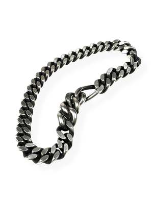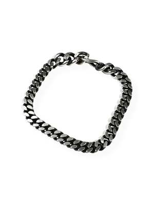 The Long Link Flat Bracelet in Silver from WERKSTATT MUNCHEN. This pure bracelet is made of hand-filed curb links that end in one long link and a folding closure, integrated almost invisibly into two oval links. Material: Sterling silver 925/000 Dimensions: Width approximately 7mm, long link approximately 7x16mm.