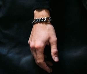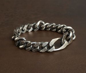 The Track Bracelet in silver from Werkstatt Munchen features solid curb chain links in various sizes that are roughly filed on one side of the bracelet, creating a captivating tension in the composition. It closes with an almost invisibly integrated spring closure. Each bracelet is handcrafted and has a particular appearance, never identical in all models. Material: Sterling silver 925/000 Dimensions: Width approximately 12 mm, widest link approximately 13 x 25 mm Handmade in Munich, Germany.