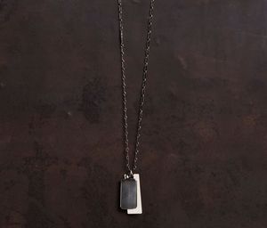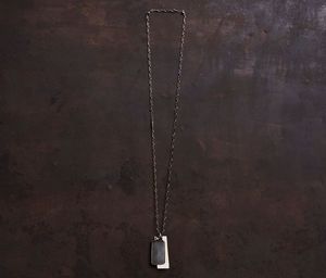 The Two Tag Fine Chain Necklace in silver from Werkstatt Munchen features a delicate chain made of round and oblong links and two contrasting tags. One tag is hand hammered with a polished silversmiths hammer, while the shorter tag has a scratched and blackened surface, creating a used look. The composition is defined by the contrast of sizes, light, and shadow. The necklace is long enough to slide over the head without a closure. Material: Sterling silver 925/000 Dimensions: Length approximately 66 cm; long hammered tag approximately 17 x 44 mm Handmade with vintage tools in Munich, Germany.