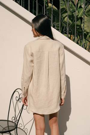 Unleash your playful side with the Denise Top in linen. This oversized button down shirt/dress offers comfort and style in one unique piece. Perfect for a casual day out or a trendy addition to your wardrobe. Who says fashion can't be fun?! Final Sale. Sorry, no exchanges or returns.