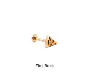 The perfect pizza stud, crafted in solid 14K yellow gold for durability and everyday wear. Handmade in the USA by our team in Los Angeles, each piece is a tiny work of art. Available with butterfly-post or screw-in flat-back options. Sold individually so you can mix and match. Dimensions: 6mm H x 5mm W. Made to order and ships in 1-2 weeks.
