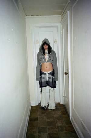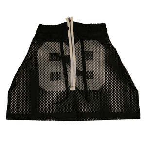 100% poly mesh skirt featuring a Raider's grey screen print "69" taken from a Skim Milk practice football jersey. Adjustable waistband and zipper sewn by CD 1974. Can be worn on the waist, above the waist, half-zipped, or unzipped and paired with a belt. 28 inch waist x 19 inch length. Primary women's piece, but designed as a unisex item.