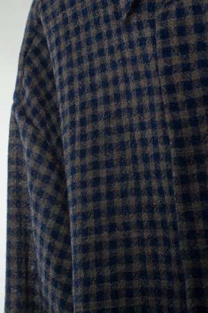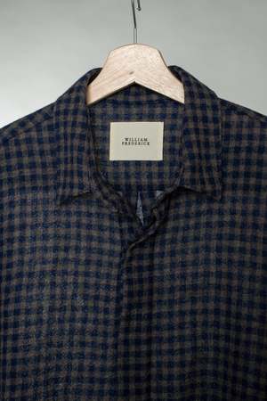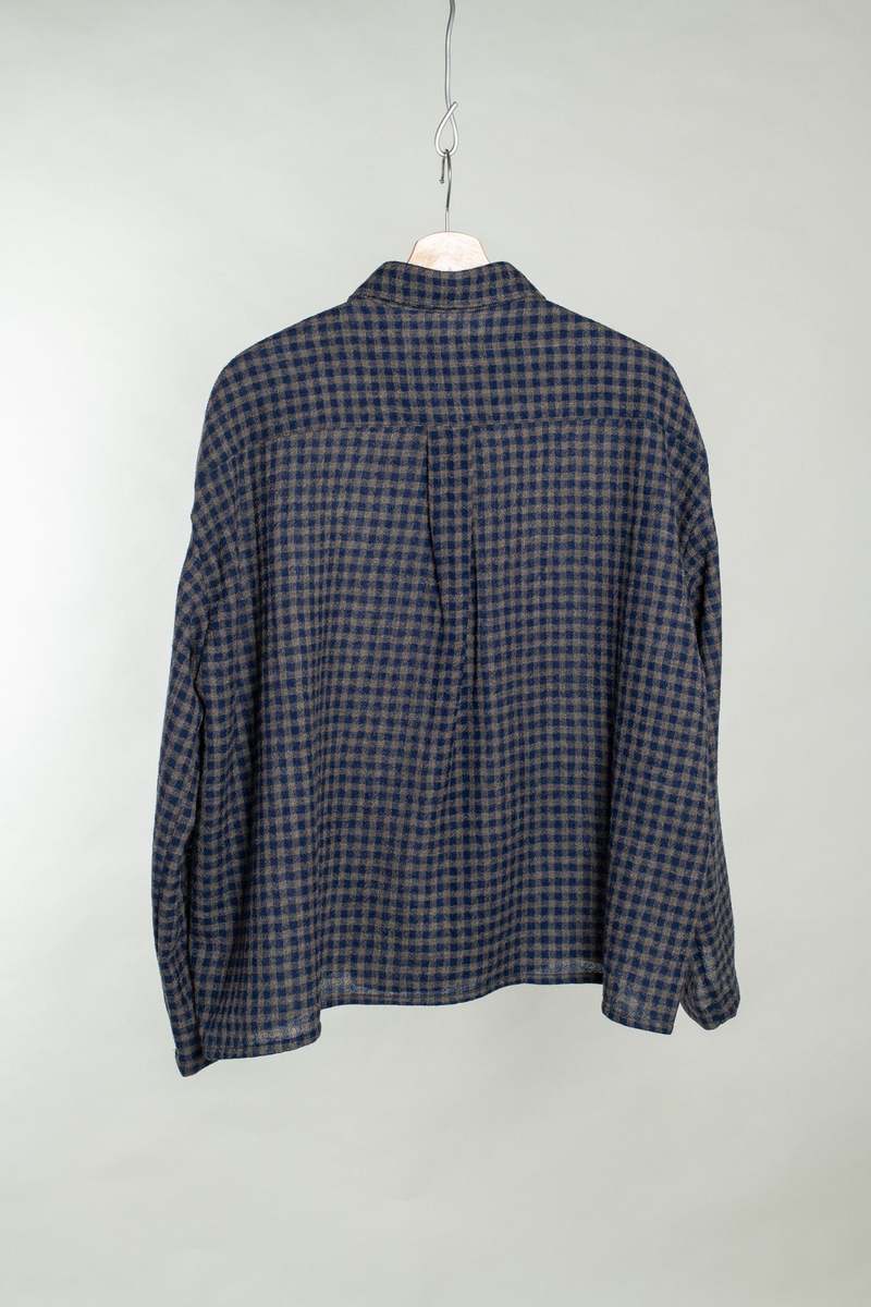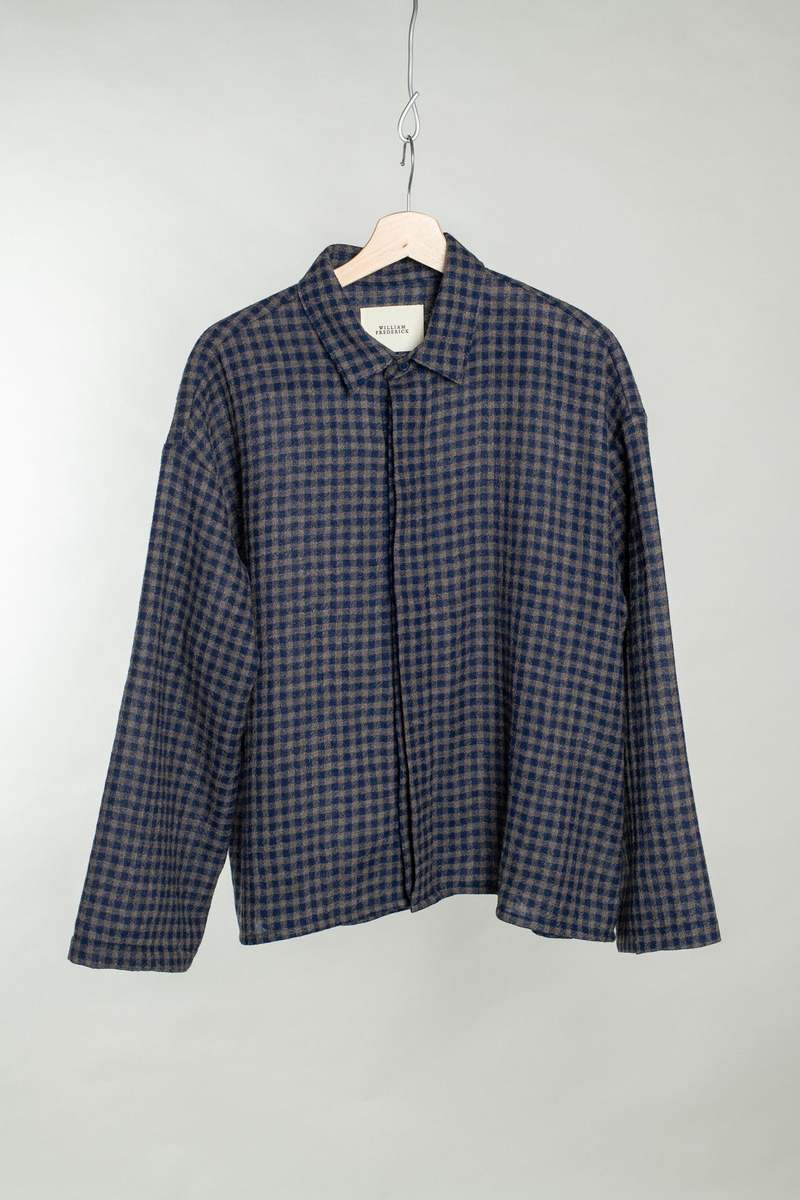 The Cafe Shirt is a cropped and boxy shirting option with an airy, slightly more casual feel. Finished with French seams, pyjama sleeves, a hidden placket for button closure, and mother of pearl buttons. This Japanese wool is loosely woven for a perfect blend of airy lightness with the added benefits and structure of wool. Cut and sewn in Cleveland, Ohio. Care instructions: Hand wash with cold water. Lay flat to dry. Material: 100% wool. Made with a lightweight worsted wool gauze woven in Japan.