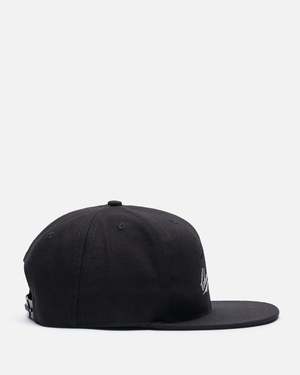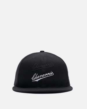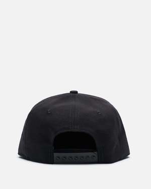 The Willy Chavarria Bad Boy Cap in Black features a 6-panel construction, flat brim, embroidered graphic at the face, tonal eyelets, and a snapback closure. Made in the USA from synthetic textiles.
