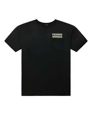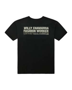 The Fashion Worker Easy Tee by WILLY CHAVARRIA combines a relaxed fit with a lived-in feel, featuring a washed-out graphic and vintage wash for authentic character. Crafted from 100% cotton, it offers effortless comfort and timeless appeal. Color: Black. Fabric: 100% Cotton.