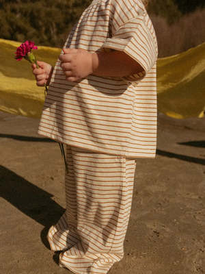 Give your little one the comfort they deserve with the Sawyer Seta thoughtfully designed two-piece featuring a relaxed boxy shirt and flowing wide-leg pants. Crafted from 100% organic jersey cotton, this lightweight set supports active play while keeping skin comfortable. Suitable for babies and toddlers of any gender, this versatile set transitions seamlessly from spring through summer and beyond, making it a reliable choice for multiple seasons.