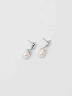 Freshwater pearl drop dangle earring. Made with recycled 925 sterling silver. Sterling silver hypo-allergenic ear posts.