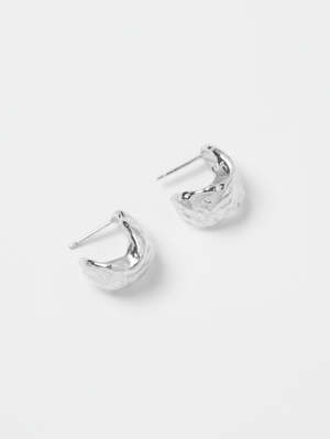 Highly textured thick hoops with a post backing. Each piece of jewelry is designed and handcrafted in Vancouver, Canada and made with recycled metals. MATERIALS & CARE 925 Sterling silver hoops and posts.