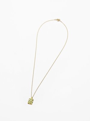 Wolf Circus Penny rectangular checkered pendant necklace with green and gold checkered pattern. 14k gold plated bronze rectangle pendant with green resin. 18" gold filled curb chain. 10mm x 14mm pendant. Made with recycled metals. PIPE AND ROW