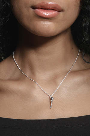 Wolf Circus Rose stem charm necklace in sterling silver on a rope chain. Each piece of jewelry is designed and handcrafted by a talented team in Vancouver, Canada. WC-N-CHARM-ROSE-S PIPE AND ROW