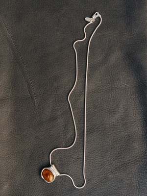Statement pendant necklace with a genuine golden sunstone gemstone. - Recycled 925 sterling silver - 925 sterling silver snake chain - Chain measures 18" in length - Natural gemstones will vary slightly in colour Each piece of jewelry is designed and handcrafted in Vancouver, Canada.