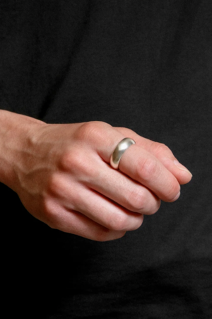 A bold, material-forward cigar band ring for all genders. MATERIAL Sterling Silver COLOR Silver SIZE Band Width: 8mm ORIGIN Handmade in Vancouver, Canada
