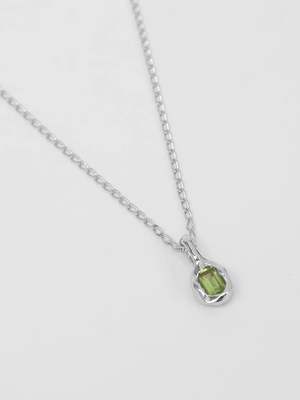 Textured pendant necklace with a genuine green peridot gemstone. Gold: 14k gold plated recycled brass with a 14k gold vermeil elongated curb chain. Silver: Recycled 925 sterling silver with a 925 sterling silver elongated curb chain. Chain measures 18" in length. Each piece of jewelry is designed and handcrafted in Vancouver, Canada.
