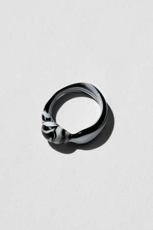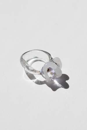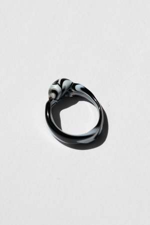 Beautiful one-of-a-kind item featuring a clear band with a slightly lilac domed top and a translucent white wraparound squiggle. Ring size: 7 Murano glass is produced on the island of Murano, near Venice, Italy. Lamp-worked and handcrafted in a series of elaborate steps. Please note this item is glass and should be treated with care.
