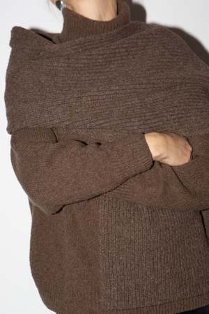 Arles Merino wool ribbed scarf in burel brown. 100% Arles Merino Wool. Made in France. Matching scarf also available.