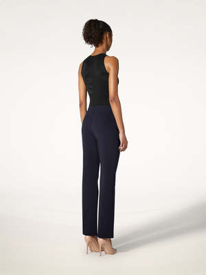 Crisp lines and clean workmanship complement these tailored pants' smooth, scuba-inspired jersey. The pants fasten with a zipper in the back for a slim, minimalist fit. - Slim fit trousers made of technical-inspired sustainable stretchable scuba fabric - Clean workmanship inside - Full length - Front pockets - Zipper at back - 87% Polyamide, 13% Elastane - Do not wash - Do not bleach - Do not tumble dry - Cool iron - Dry cleaning extra gentle