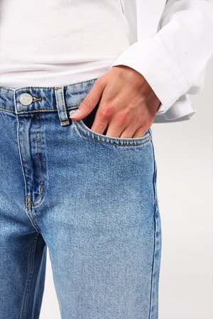 Wood Wood Eve Jeans in Classic Blue Vintage Fit: Regular - shop to size Material: 100% cotton - Straight cut - Mid rise - Cropped at the shin - Front zip fly - 11.25 oz European denim