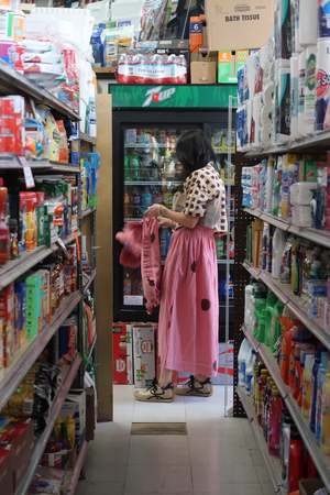 Designed in collaboration with Meredith Peck, this skirt captures playful elegance through hand-blocked cocoa dots printed on soft, rose-pink organic cotton. Crafted with assumed azo-free dyes, it features a gathered full elastic waistband that offers an easy, flexible fit and a beautiful, flared A-line silhouette that moves effortlessly from casual daytime to relaxed evening wear. Crafted over 11 days: 9 days hand-printing, 2 days for stitching and finishing. - Rose pink with cocoa dots - Relaxed fit with waist tie - Has pockets - A 29" waist model wears a size S - Falls 36" from the waist - 100% handwoven organic cotton, airy and soft - Each piece is hand-block printed, with slight variations in color and pattern that add to its unique charm All products are ethically made in small batches by local artisans in India. Meet Mr. Shahzad, the maker of this skirt.