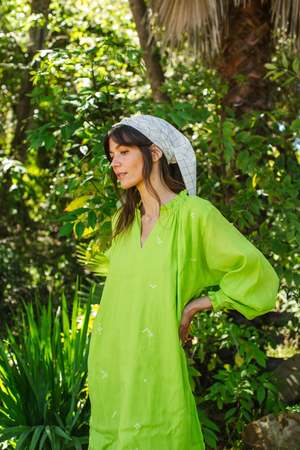 Style this Window pane checkered bandana with any outfit to add an instant sweet appeal. You can wear it as a scarf or tie it in your hair, endless versatility! - 100% handwoven cotton. - Dimensions: 29" x 29"