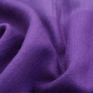 This is a vibrant Pashmina Zari stole in a stunning turquoise. The main body of the stole has a smooth, elegant texture that contrasts beautifully with a finely ribbed, detailed zari border at the bottom. The subtle shimmer of the zari threads adds a touch of sophistication to the rich color, making it a versatile and timeless addition to any wardrobe. - Prominent Purple - Handwoven - Size: 80 x 27 inches - Weight: 124 grams - 100% Pashmina - Dry clean only